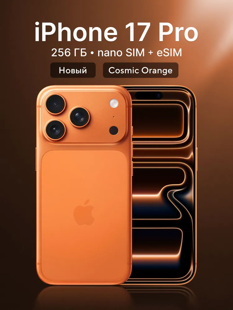 Apple Смартфон iPhone 17 Pro, Dual: nano SIM + eSIM Global 12/256 ГБ, оранжевый