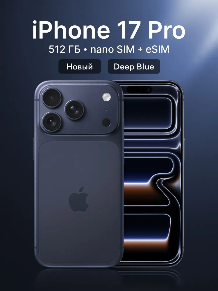 Apple Смартфон iPhone 17 Pro, Dual: nano SIM + eSIM Global 12/512 ГБ, синий