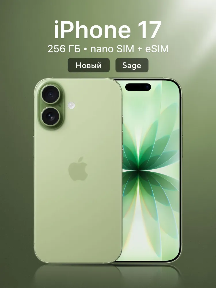 Apple Смартфон iPhone 17, Dual: nano SIM + eSIM 8/256 ГБ, зеленый