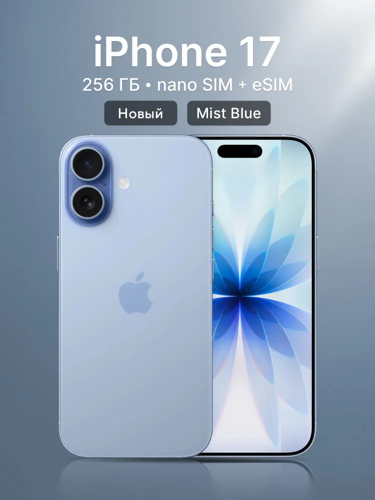 Apple Смартфон iPhone 17, Dual: nano SIM + eSIM 8/256 ГБ, синий