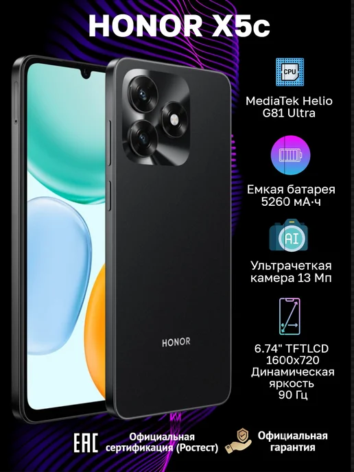 Смартфон X5c 4+64ГБ, Полночный черный