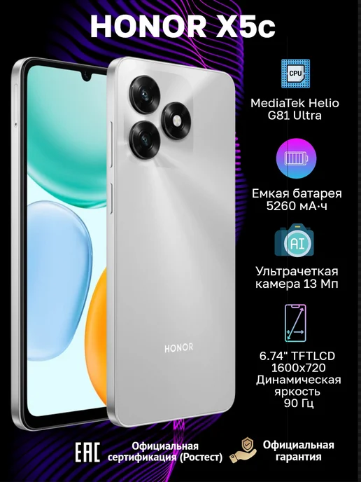 Смартфон X5c 4+64ГБ, Космический серый