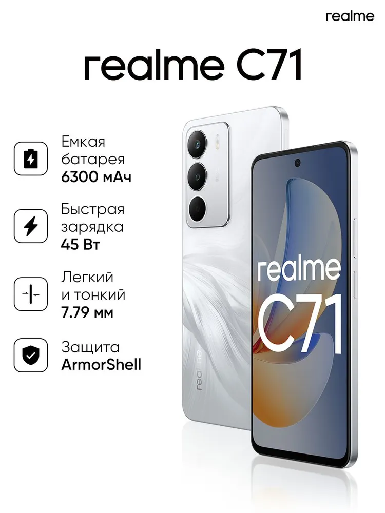 realme Смартфон C71 Ростест (EAC) 6/128 ГБ, белый