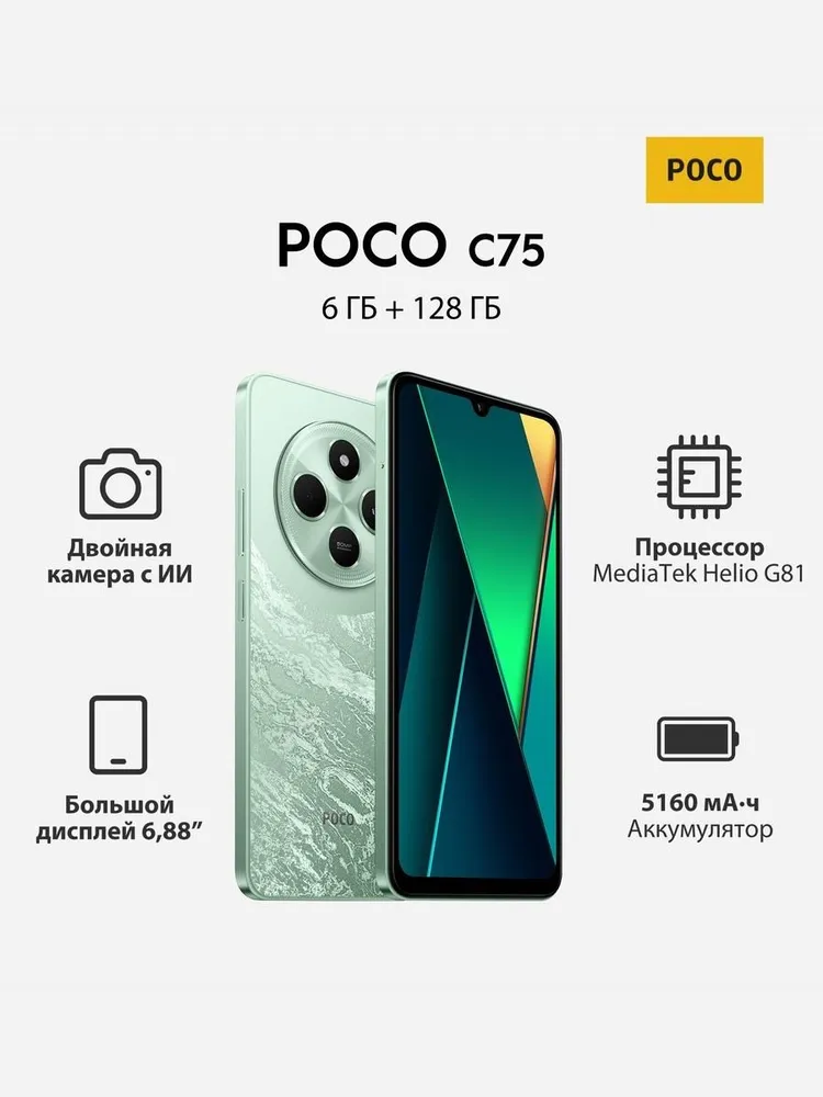 Poco Смартфон C75 Ростест (EAC) 6/128 ГБ, зеленый