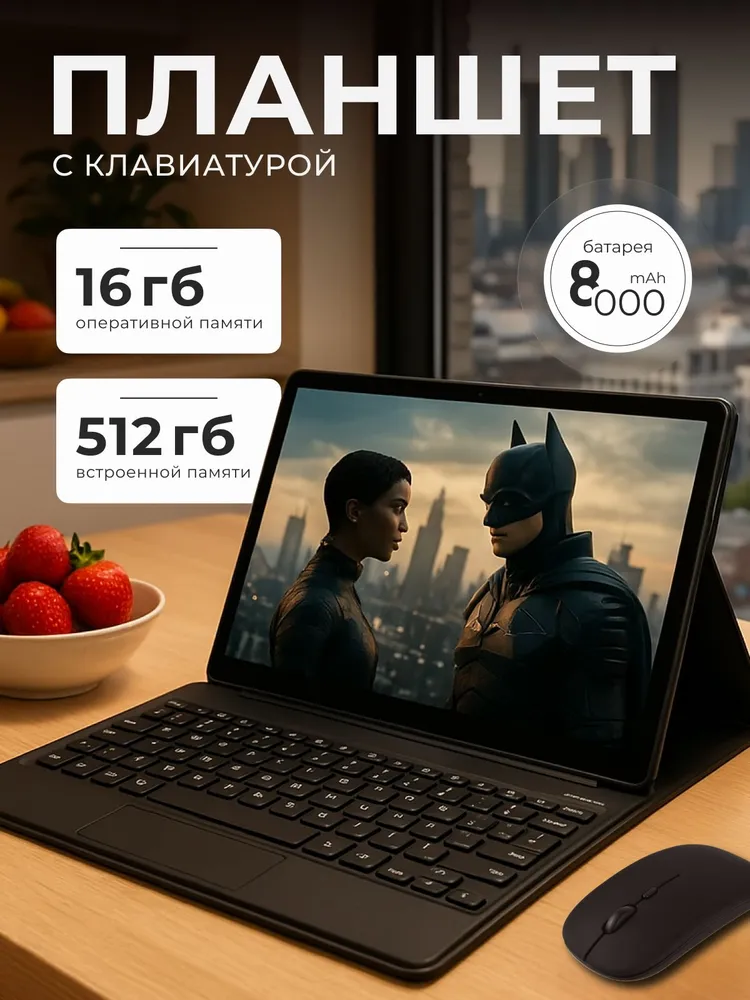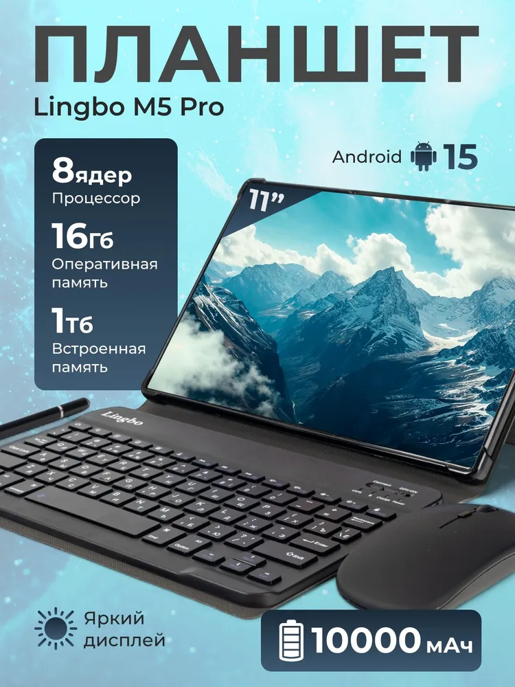 GoodWin Планшет Андроид M5-PRO, с клавиатурой, 11" 16 ГБ/1020 ГБ, светло-серый, черный матовый