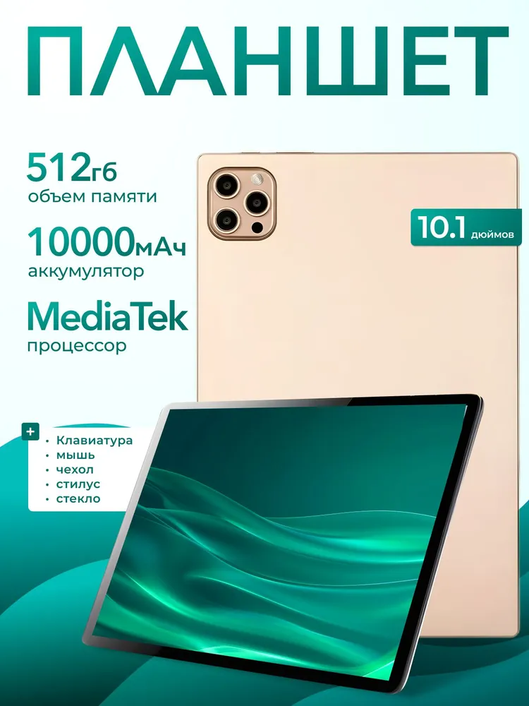 Mackenzie Планшет Мощный, 10.1" 16 ГБ/512 ГБ, золотой