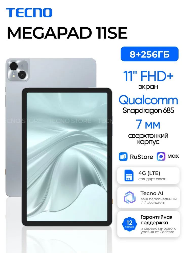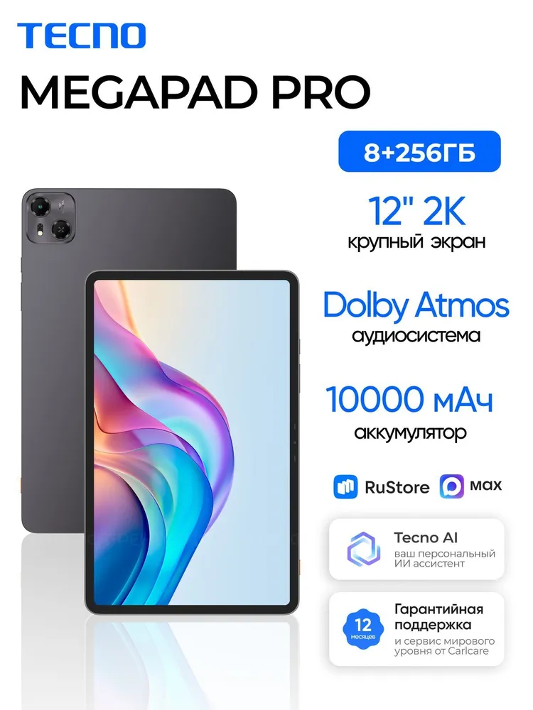 Tecno Планшет MegaPad Pro LTE, 11.97" 8 ГБ/256 ГБ, серый