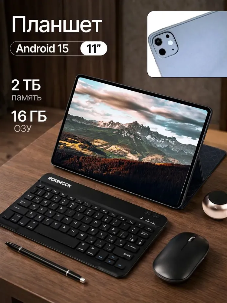 AmibiX Планшет Андроид Rommoсk M5 Max 2026, 11" 16 ГБ/2048 ГБ, черный