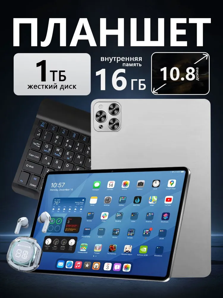 izik Планшет x95, 10.8" 16 ГБ/1024 ГБ, серый металлик