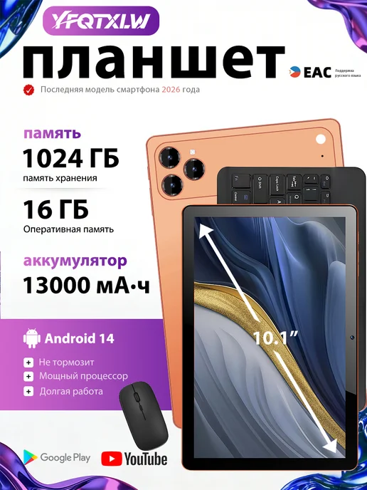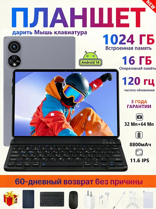 Умный планшет 16 ГБ+1024 ГБ 13000 мАч