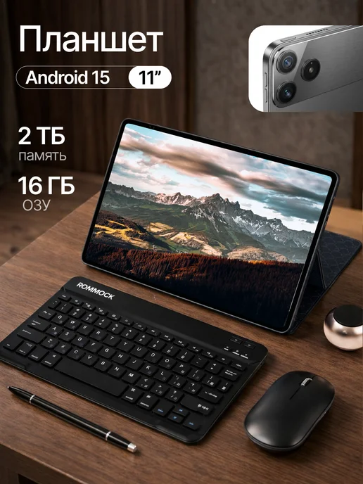 Планшет андроид с клавиатурой 16гб 1024гб чёрный
