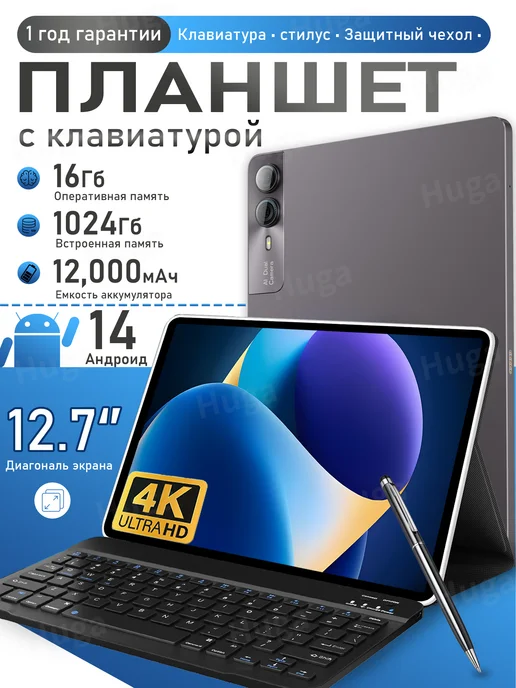 12.7'' планшет с клавиатурой,16 ГБ+1ТБ,Андроид 14,12000 мА·ч