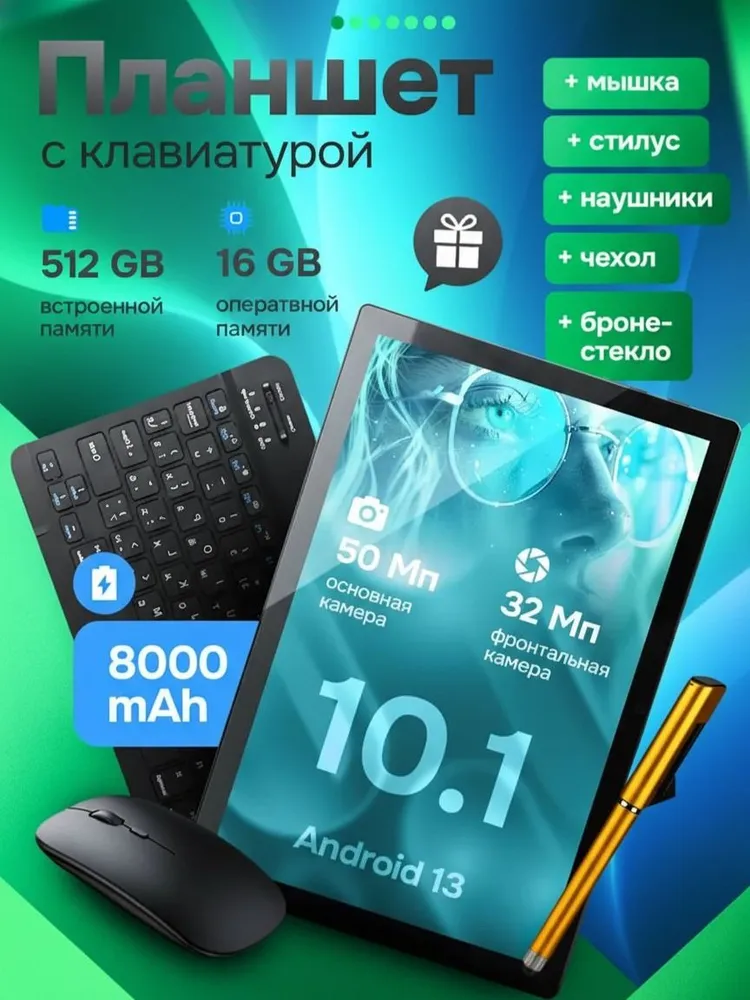 Игровой планшет Pad7 pro, Android 14, 16GB+1TB,8800mAh, Мышь, клавиатура и стилус